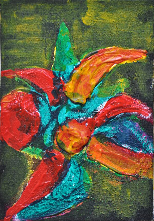 キャンバス地にアクリル絵の具を用いて描いた作品です。 サムホール(22.7×15.8cm)というサイズの小さな作品です。
